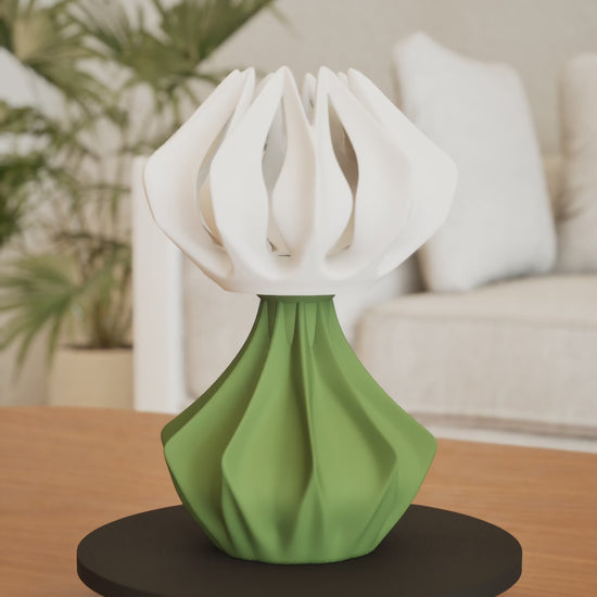 Create warm, cozy light for reading and relaxation with this ambient table lamp designed to blend sculptural form and soft glow, 3D printed.