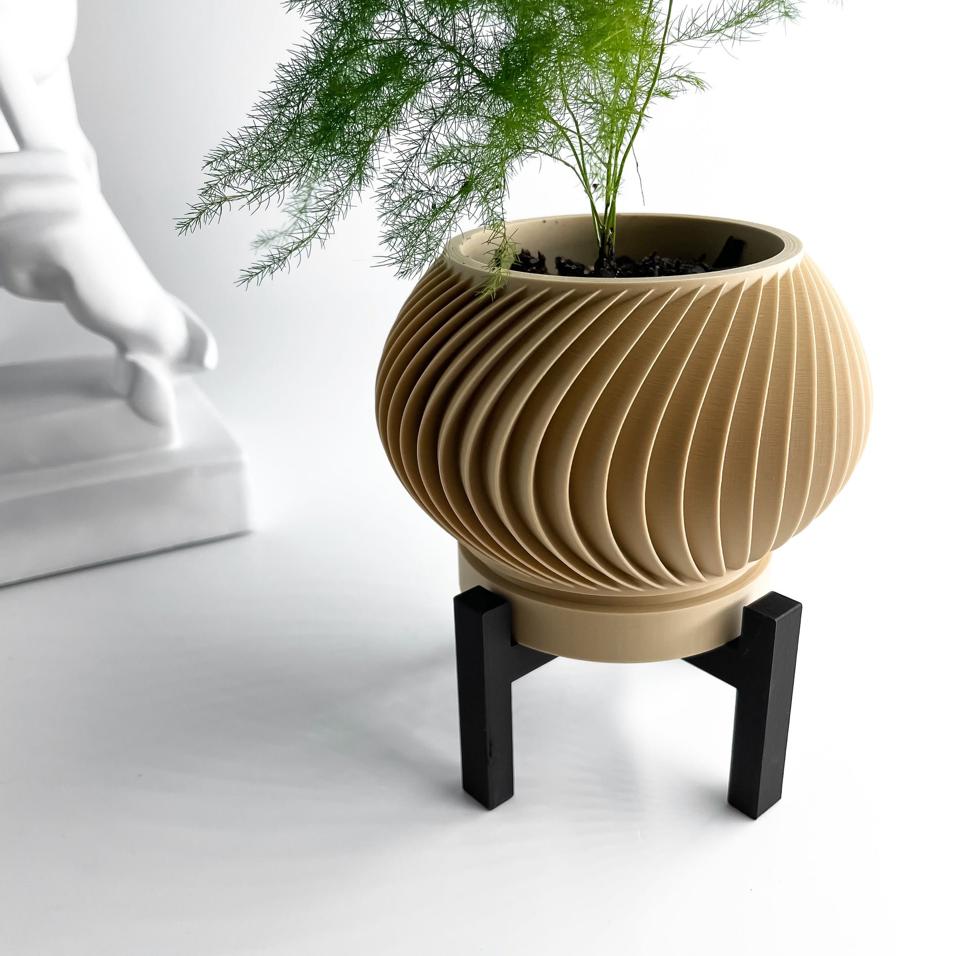 Brighten your desk or shelf with a sculptural planter pot that brings clean lines and a modern touch, 3D printed.