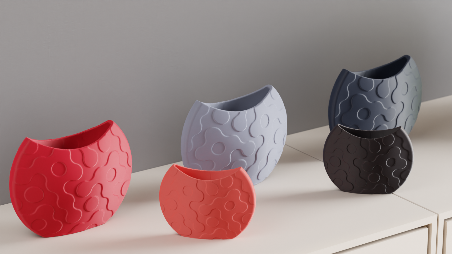 Add a touch of contemporary design to your space with this sleek vase, Featuring an organically flowing pattern of circles and waves. The rhythmic interplay of shapes creates a sense of movement and harmony, Making it a striking accent for modern and minimalist interiors.