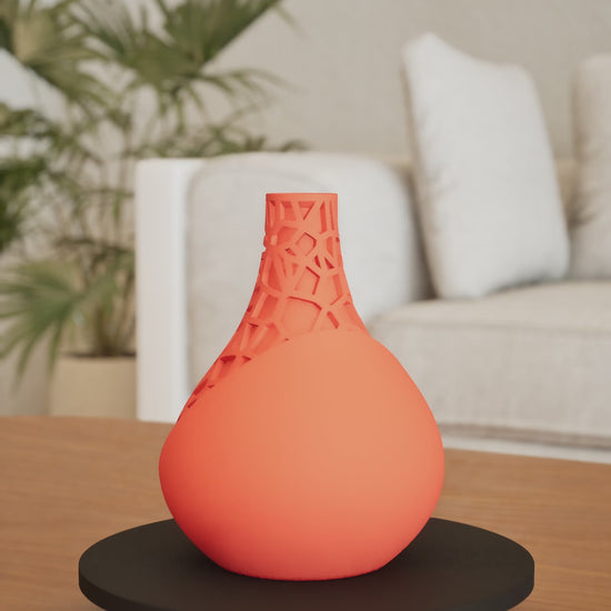 This contemporary vase brings sculptural style to everyday spaces while staying lightweight and durable. The eco friendly PLA Bioplastic choice means a plant based approach that still feels modern and reliable. Its unique character makes each piece feel special whether used with fresh stems or preserved arrangements.