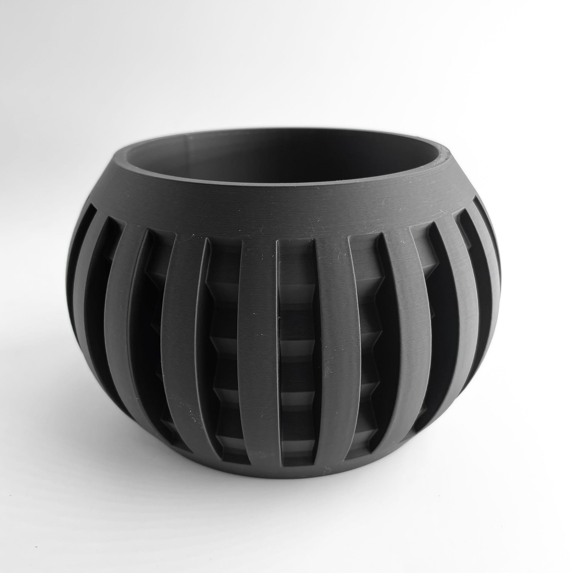 Give your plants a sculptural home with this Geometric planter that blends clean lines and organic curves, 3D printed. This modern desktop accent lifts a shelf, desk or windowsill with subtle texture and contemporary form. The design pairs everyday utility with a unique character and eco-friendly construction using PLA Bioplastic.