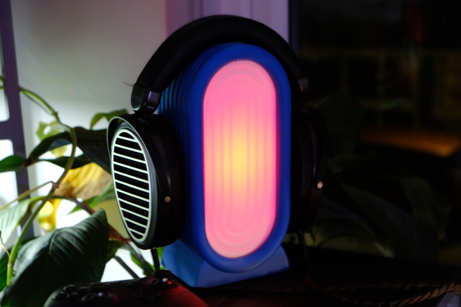 Headphone Stand, Ambient RGB Lamp, ArtDeco Headset Organizer, Minimalist Nightstand