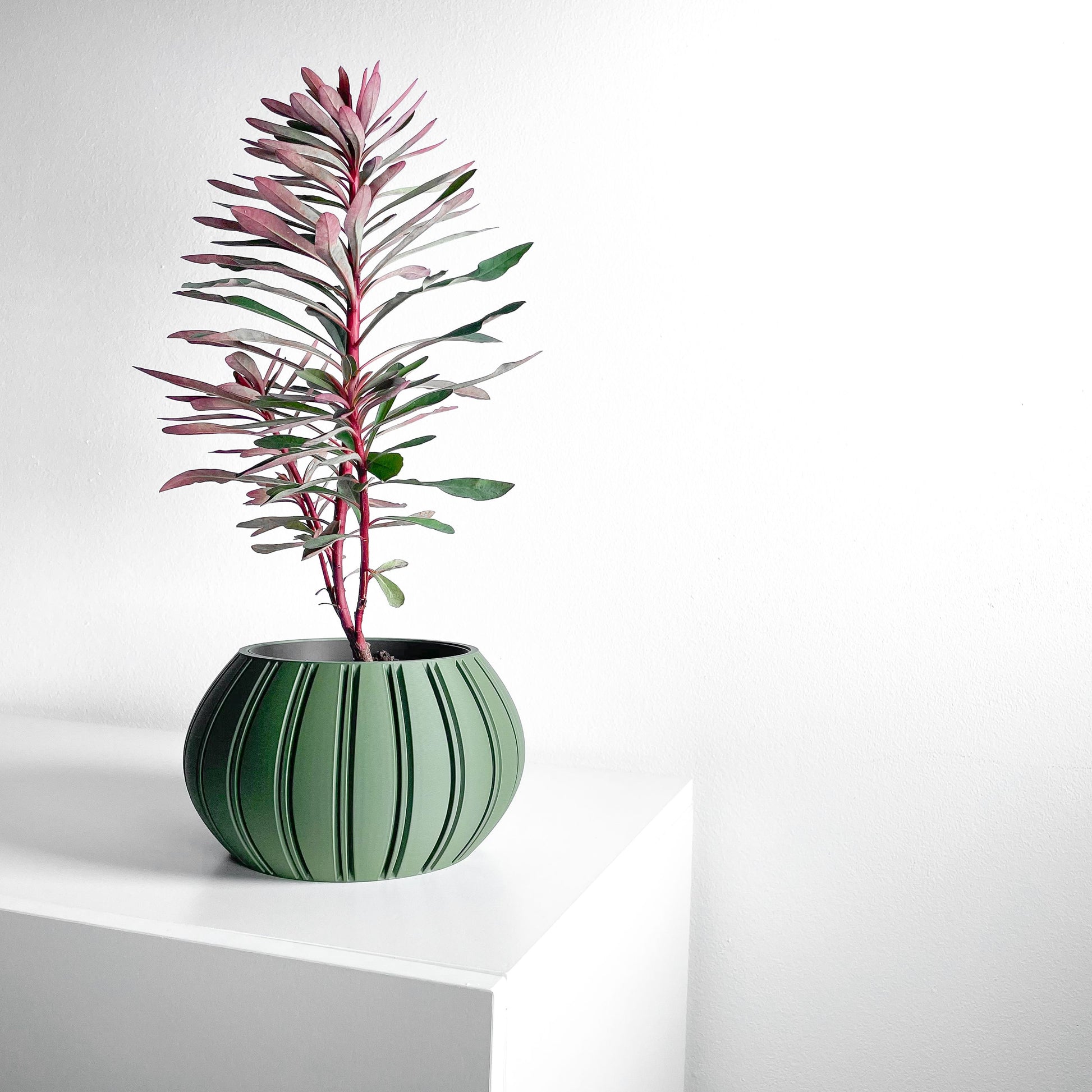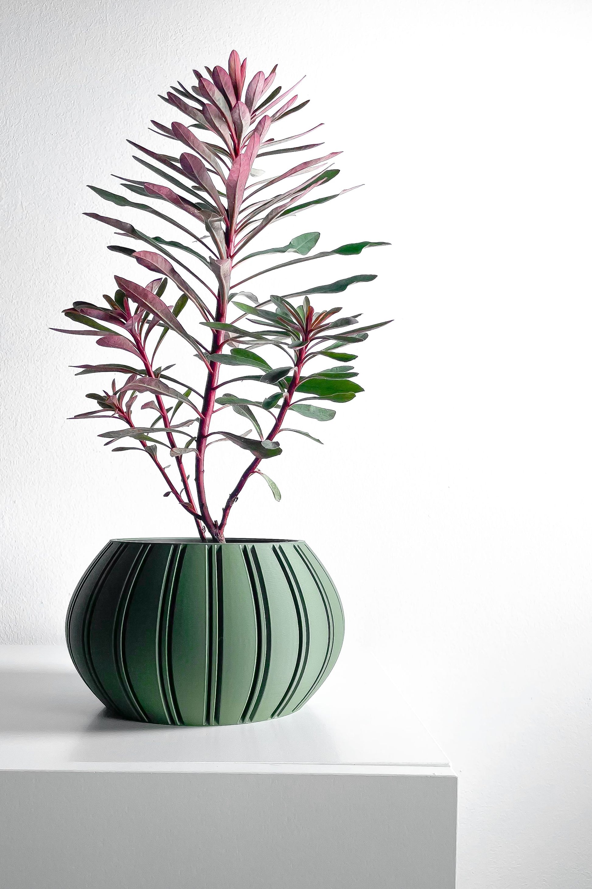 Elevate your plant display with this sculptural planter pot, Designed with clean lines and a modern profile - Precisely 3D printed. Handmade character meets eco-Friendly PLA bioplastic, So each piece arrives with a unique presence of its own. Lightweight, Durable, And quietly architectural, It turns a simple plant into a small moment of design.