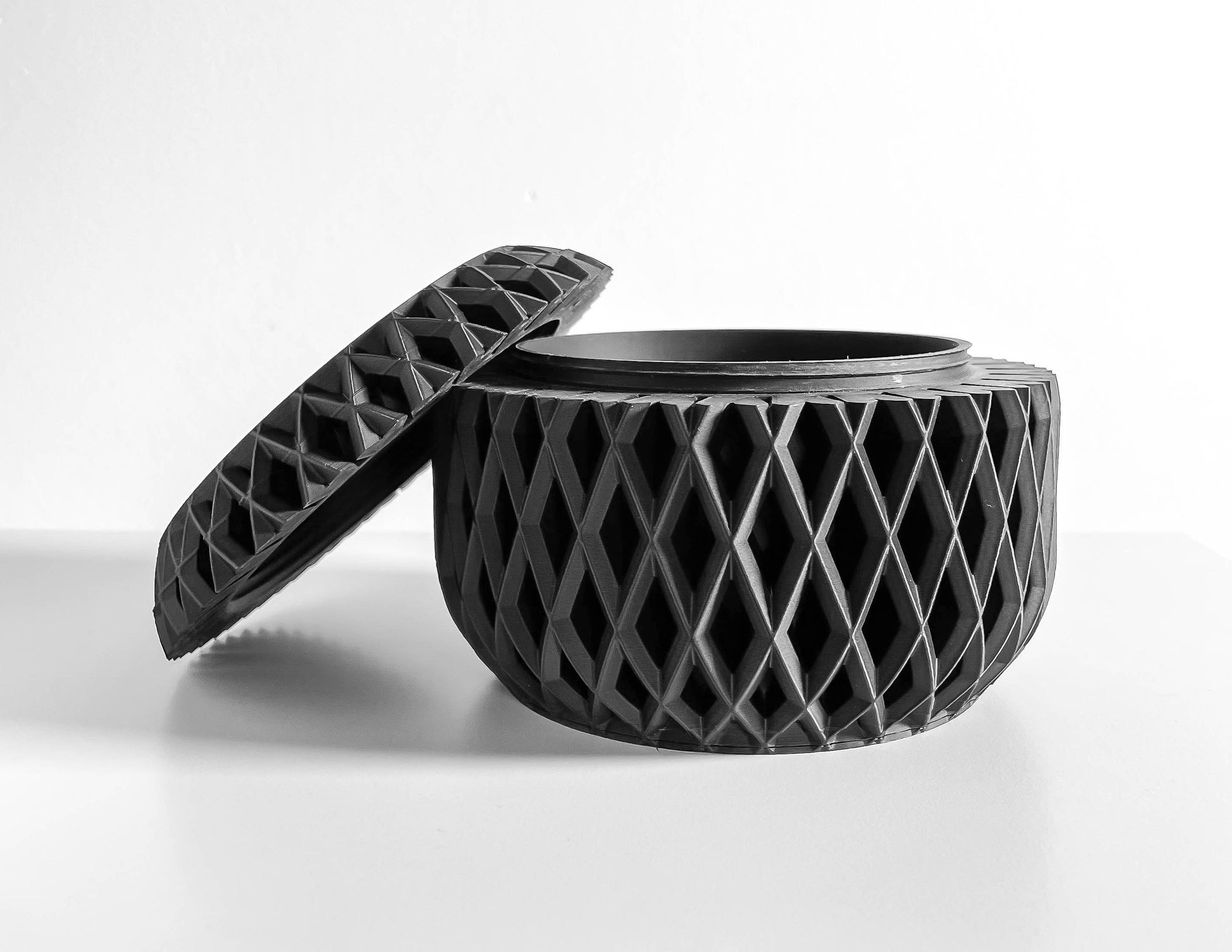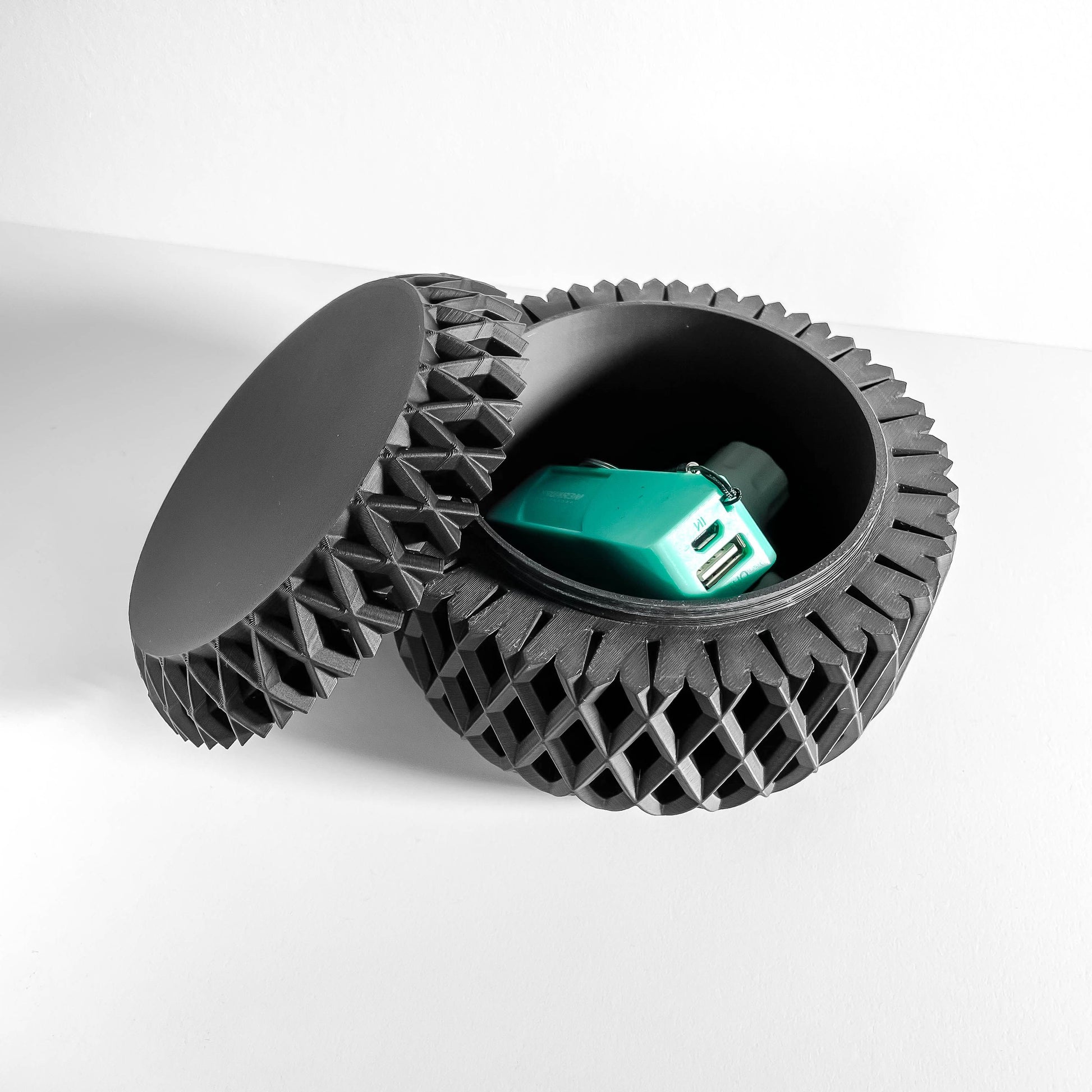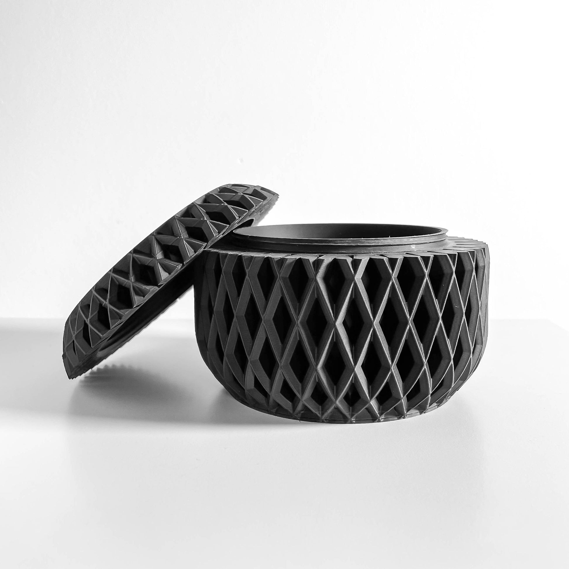 Bring calm to clutter with a sculptural lidded container that tucks away small essentials and reads like a tiny object of design, 3D printed.
