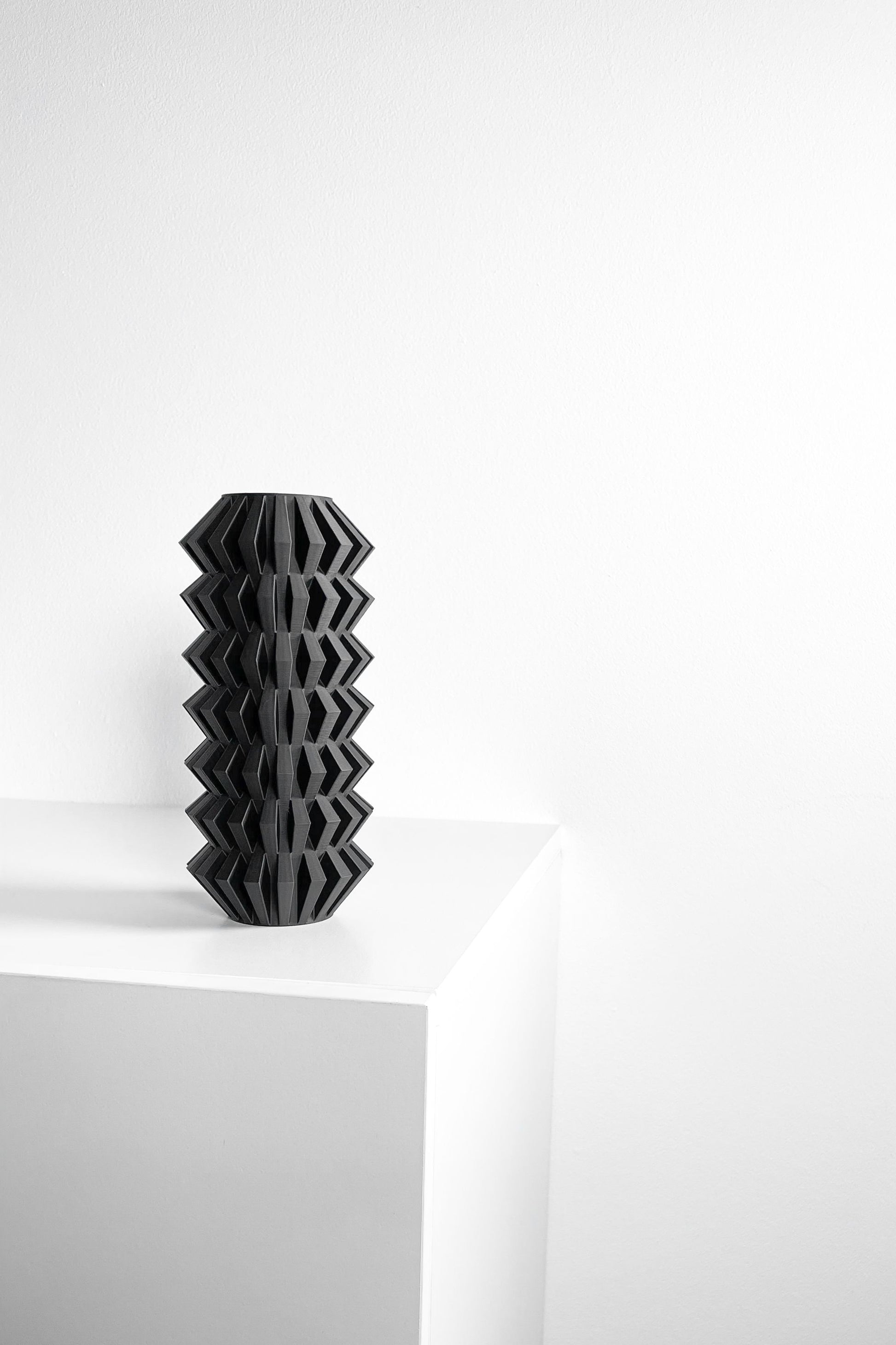Change the feeling of your mantel or console with this modern vase - A refined tabletop piece with strict curves and a calm, Quiet presence, Precisely 3D printed. Its silhouette reads intentional rather than decorative, Like a small architectural gesture edited into the room. And even empty, It feels like a composed pause - A breath held in shape.