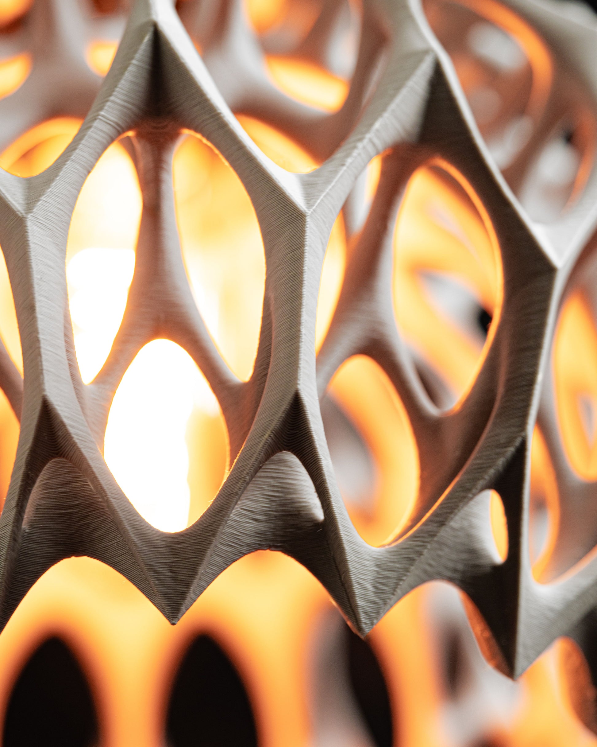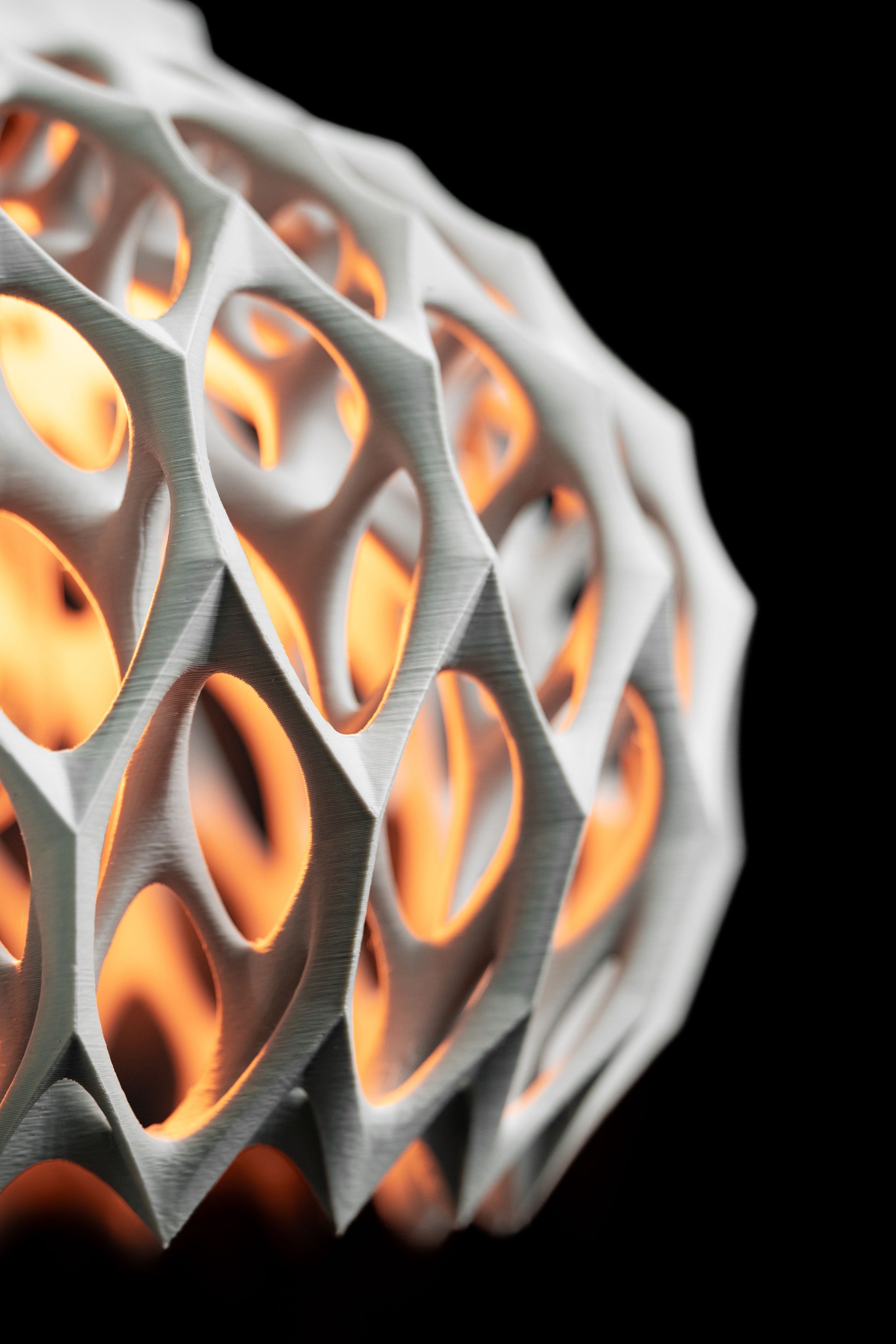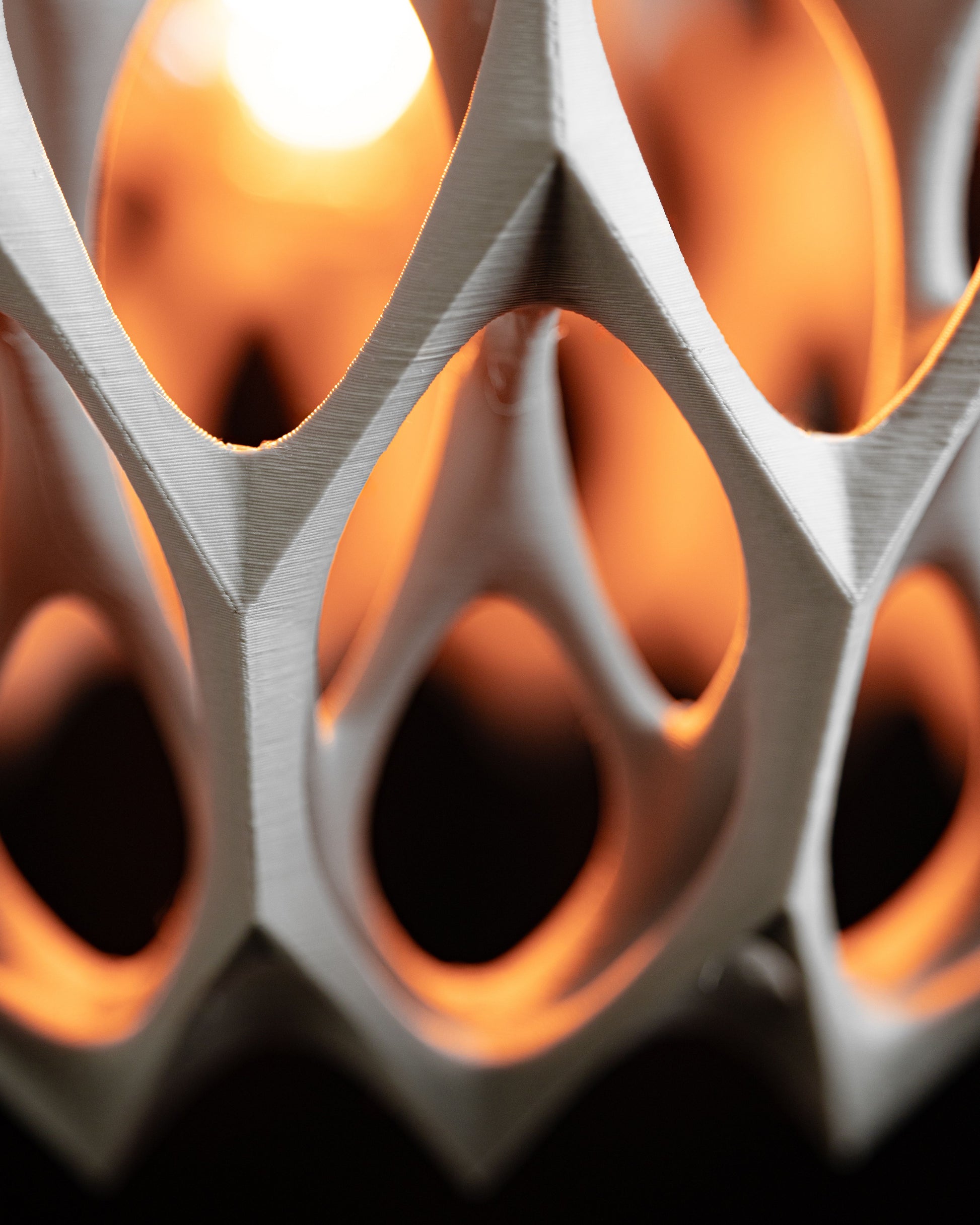 This sculptural pendant light brings focused, Warm illumination to counters and entryways and is 3D printed.