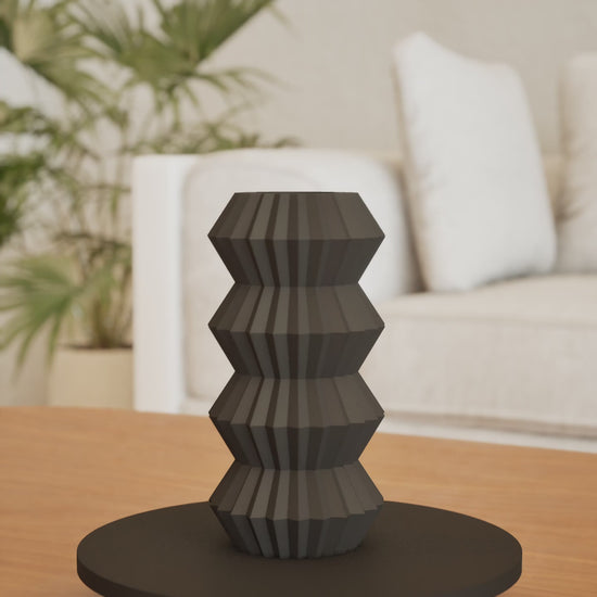 Bring flowing motion to your table with a sculpted ripple silhouette that draws the eye, 3D printed. This modern vase offers a tactile presence and a steady base for fresh or dried stems. It blends contemporary style with everyday durability, making it a refined focal point for dining or casual displays.