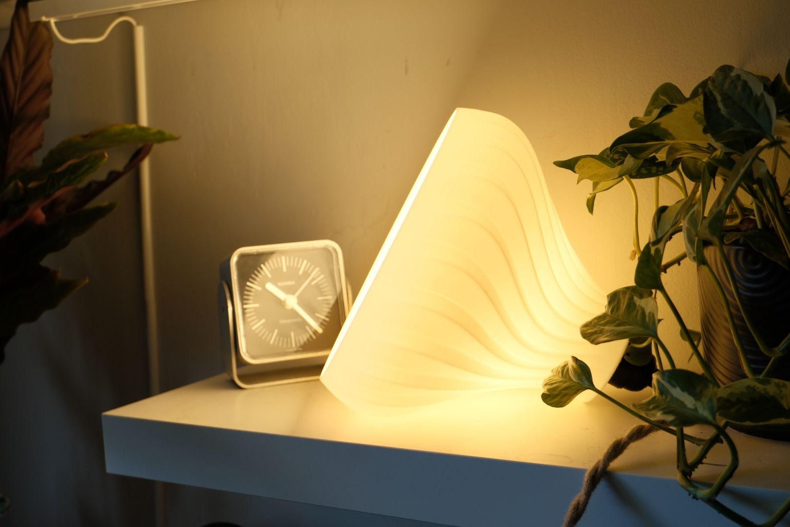 Every flowing ridge is crafted to cast eye catching patterns that transform plain walls into focal art. The flat base lets it rest steady as a table lamp or hang as a ceiling fixture and adds a sculptural presence to bedside areas and kitchen islands.