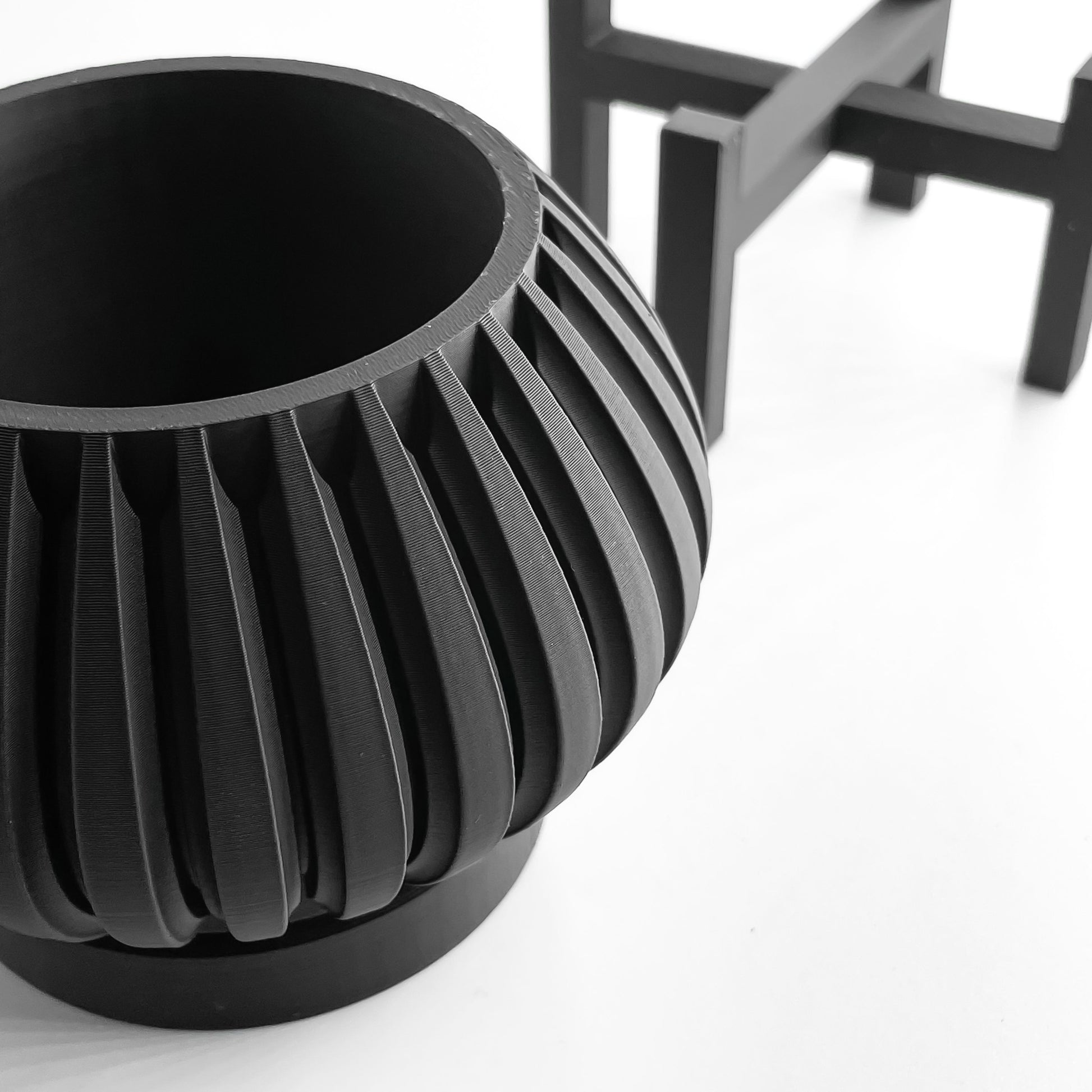 It brings a contemporary minimalist silhouette to shelves, desks, and small balconies. Each piece carries unique character with visible layer lines that create a crafted look while offering everyday durability.