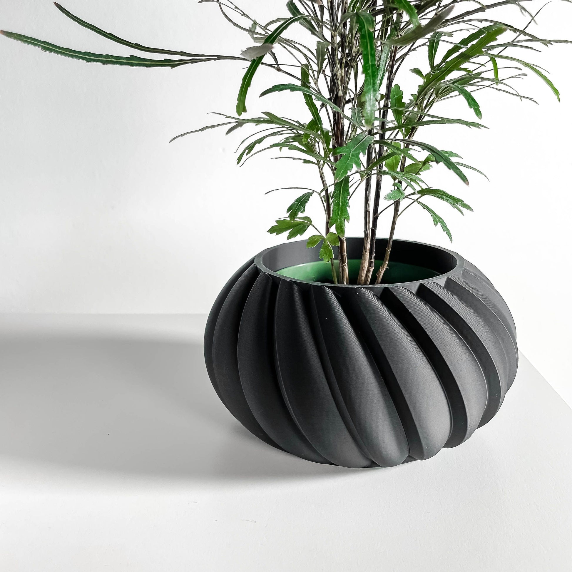 Planter Pot, Contemporary Sculptural Container, Indoor Succulent Holder Black Matte