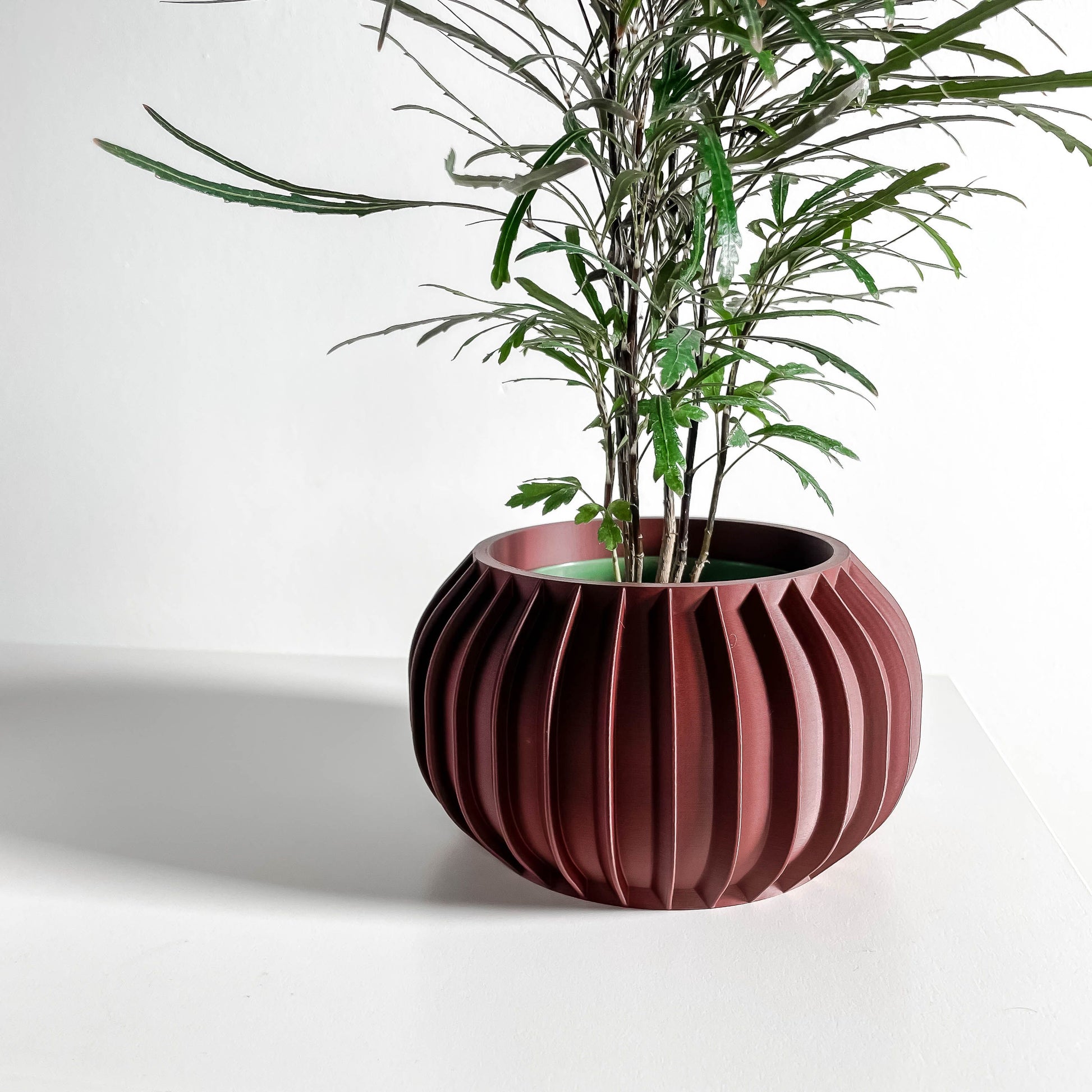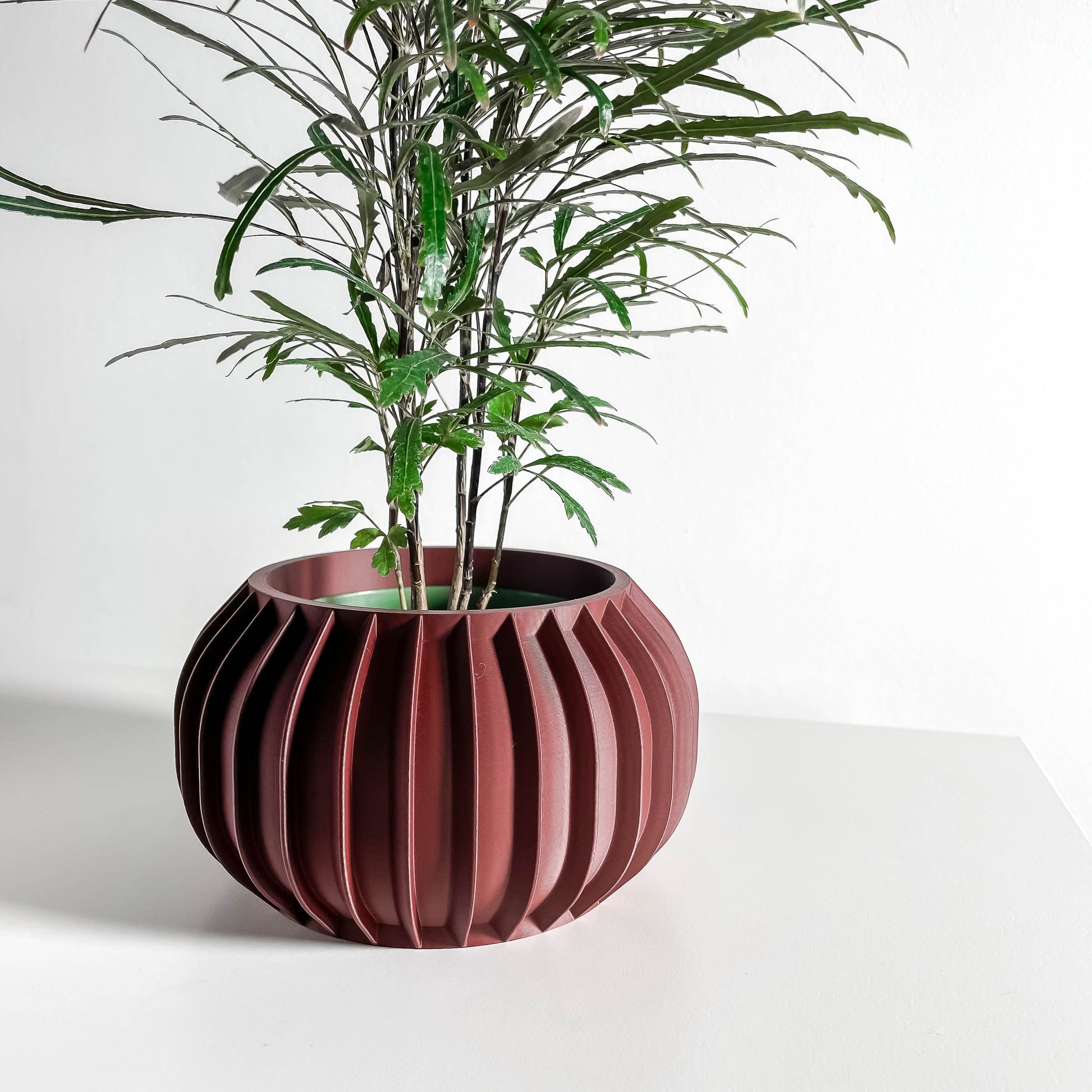 Bring sculptural form and clean lines to any shelf with this planter pot, designed for modern homes and compact greens, 3D printed.