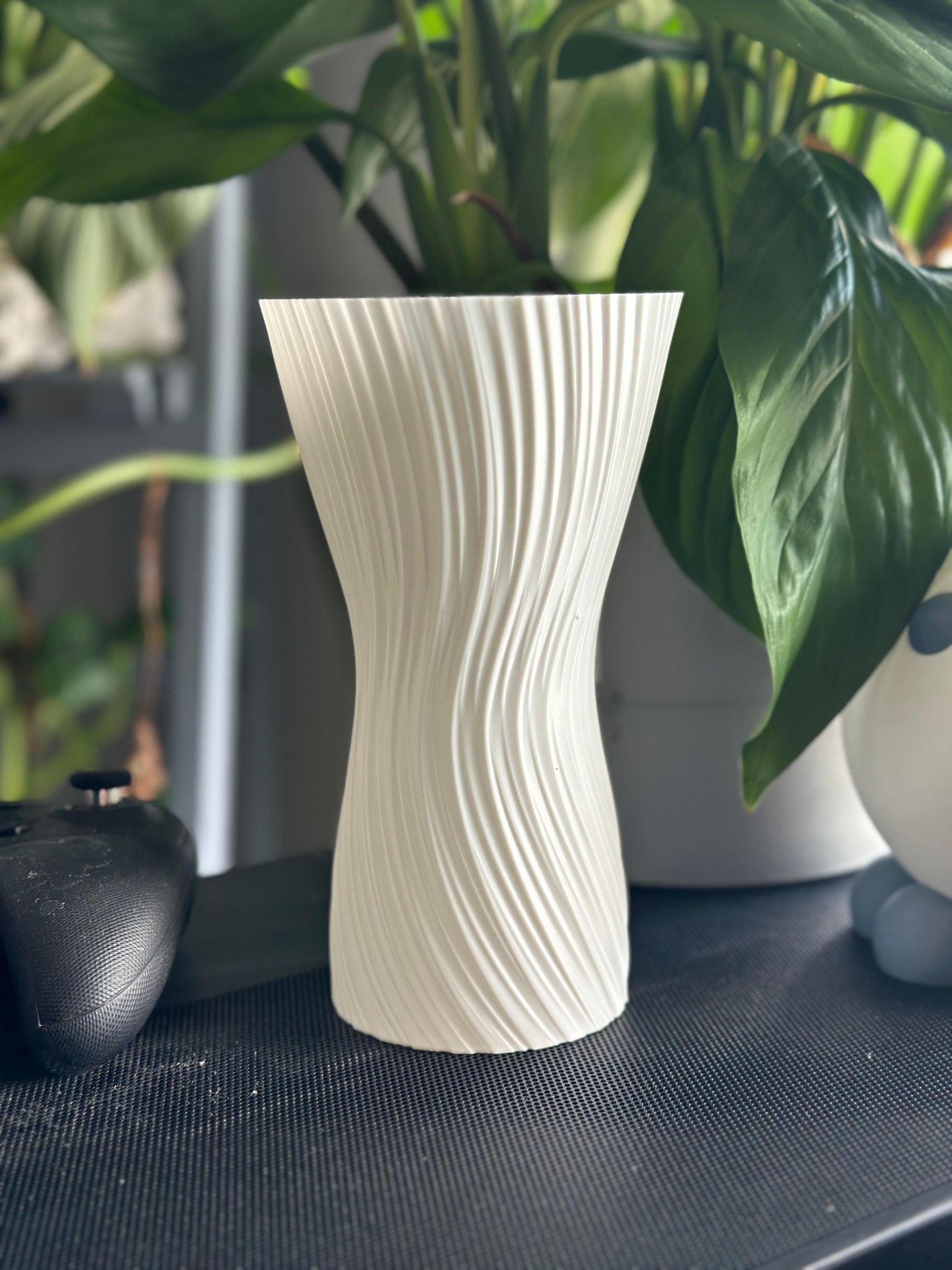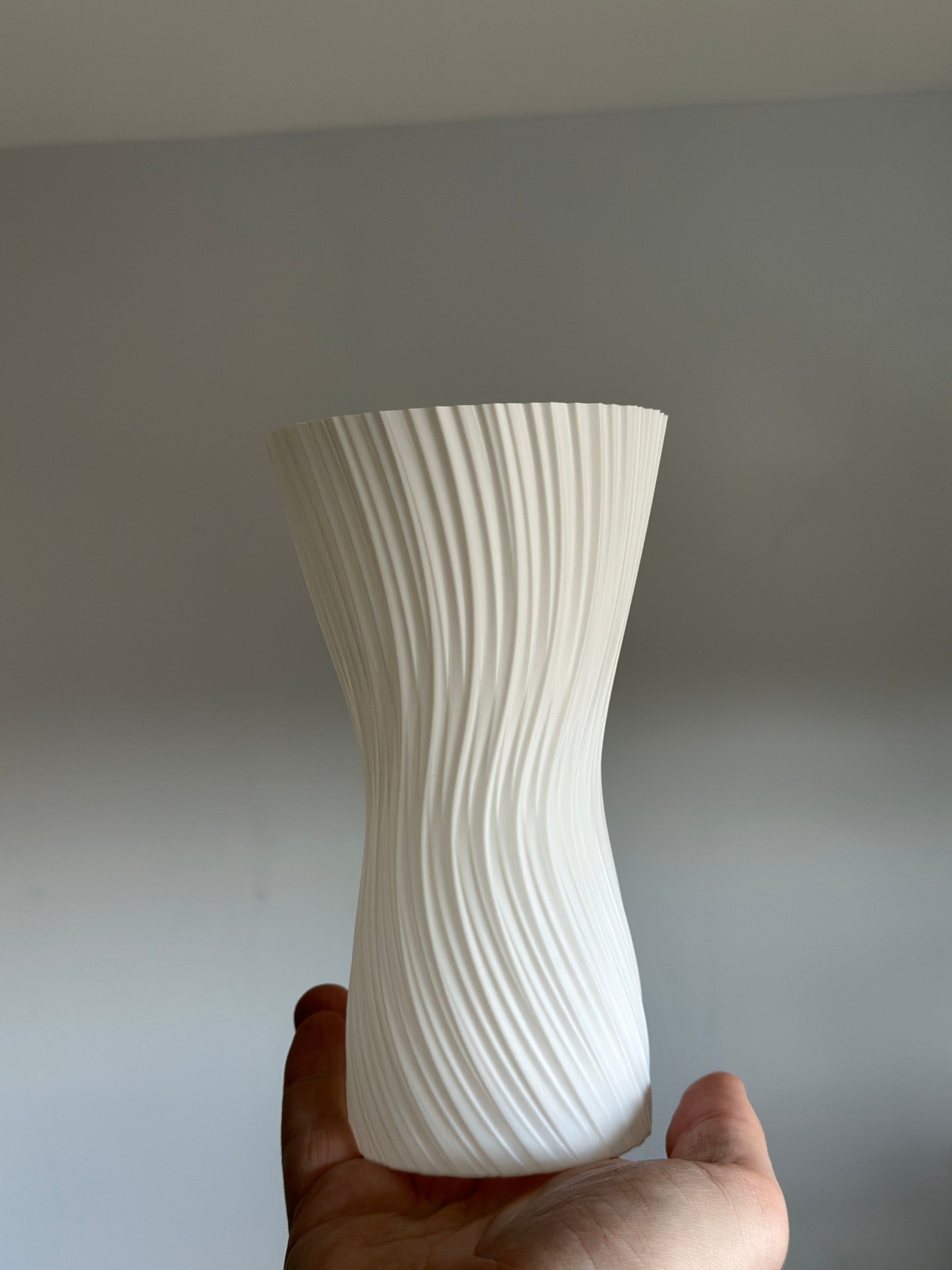 Refresh your display with a sculptural ripple vase that brings motion and light to any shelf 3D printed.
