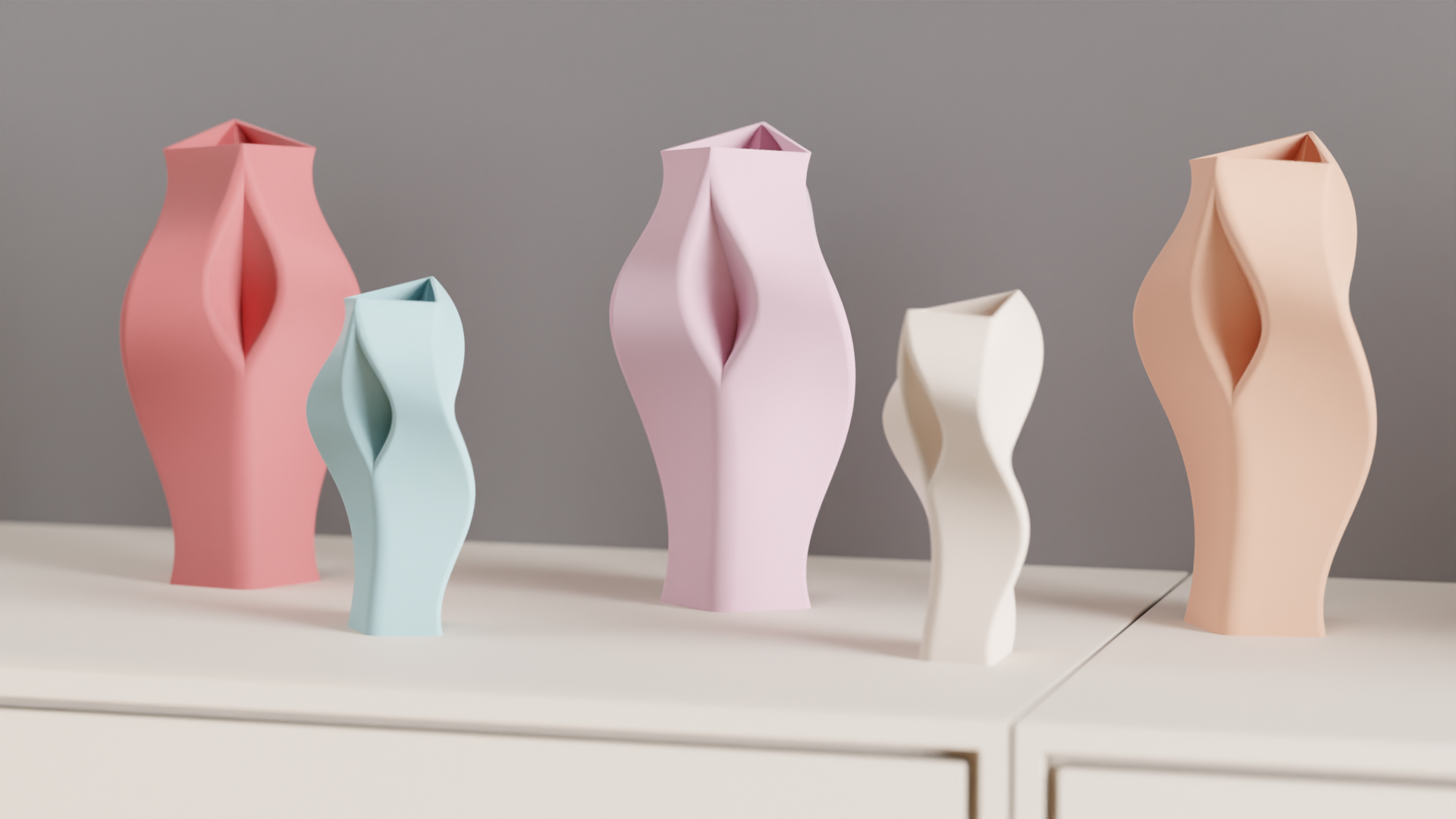These contemporary vases showcase striking geometric forms defined by bold angular cuts and twisted silhouettes. Each piece captures light and shadow in motion, Creating dynamic visual interest from every perspective. Perfect for modern interiors, They bring an architectural edge and sculptural sophistication to any space.