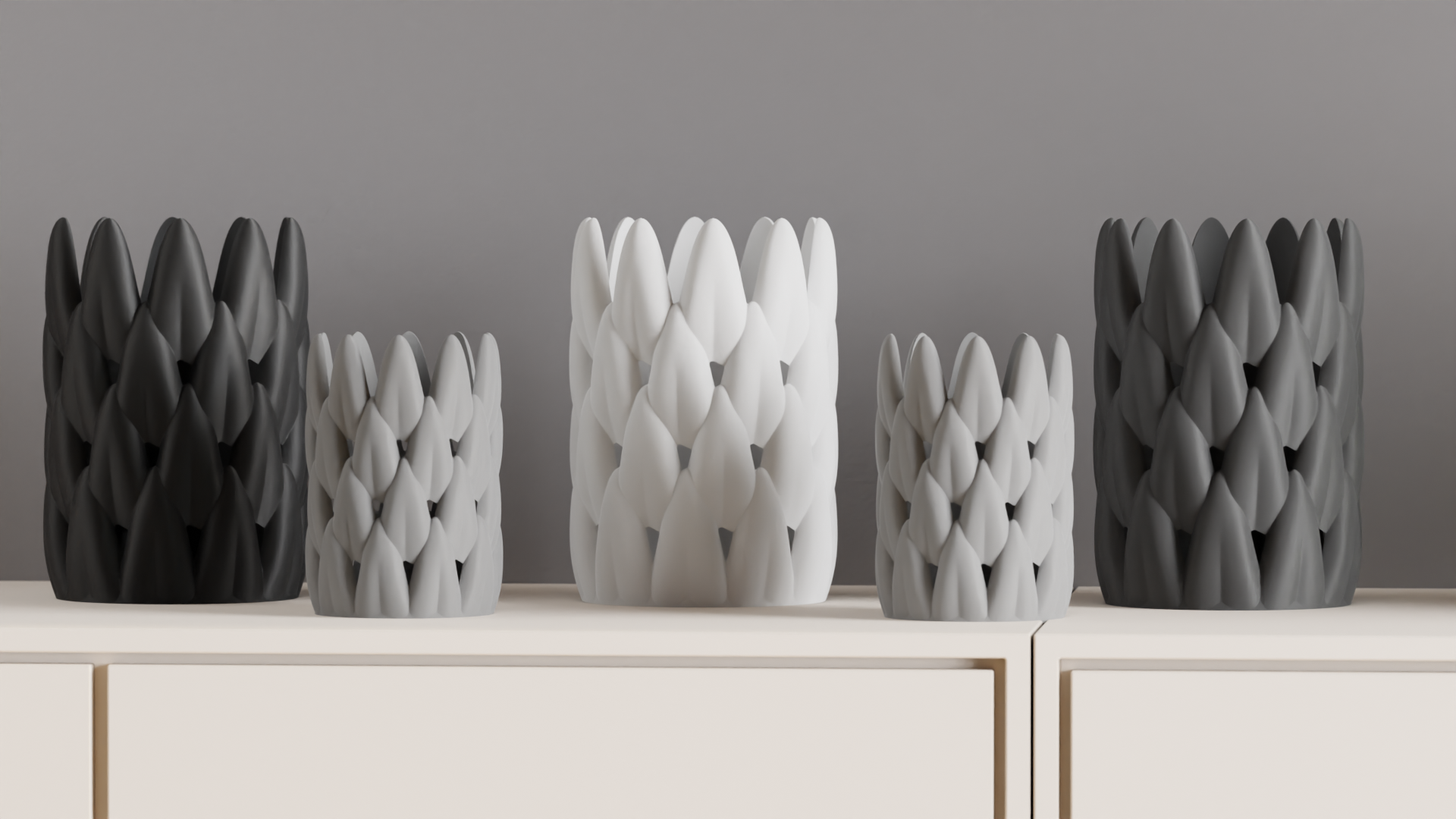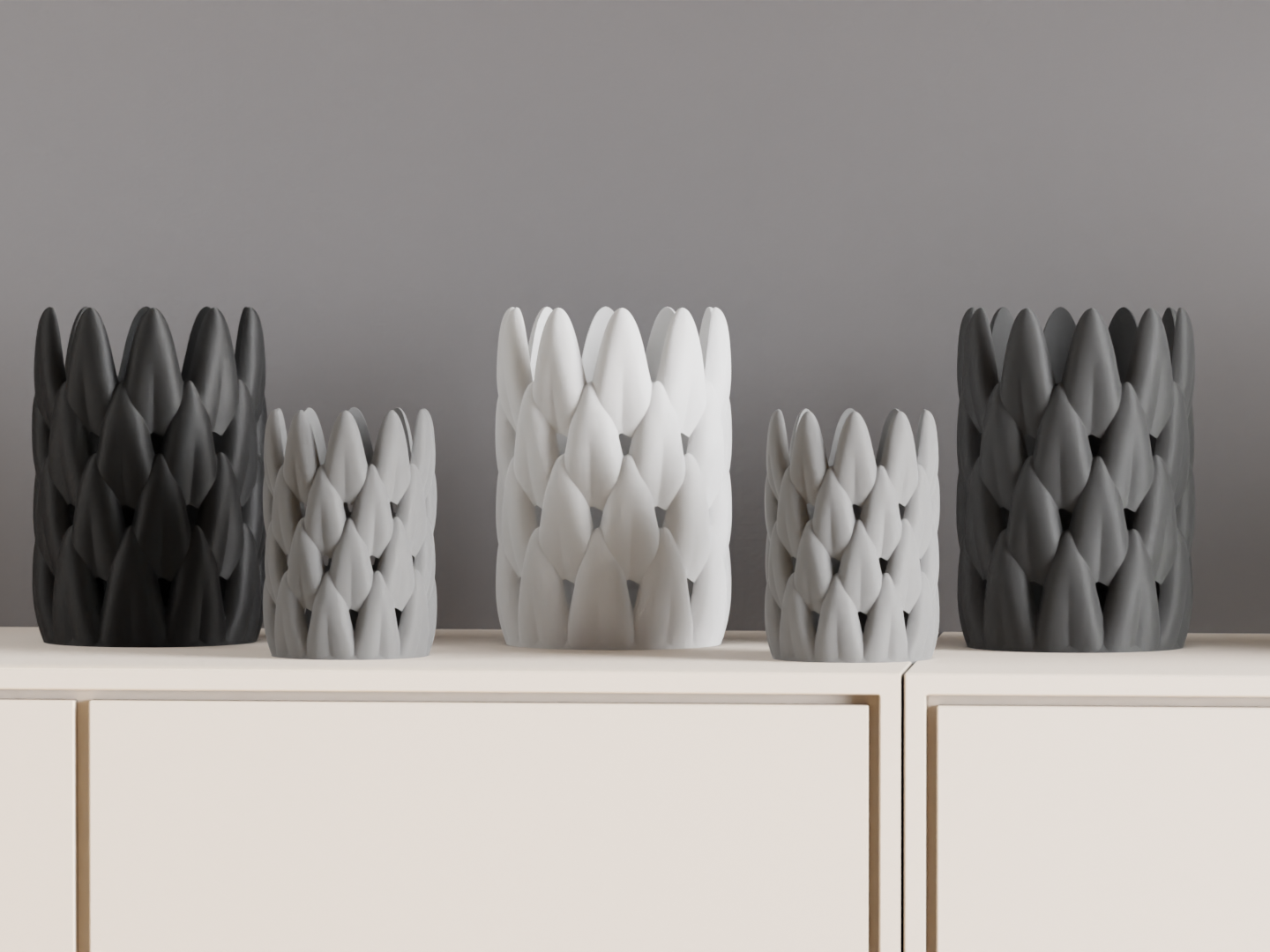 Discover a sculptural piece that brings layered leaf movement to shelves, desks, and mantels; this piece is 3D printed.