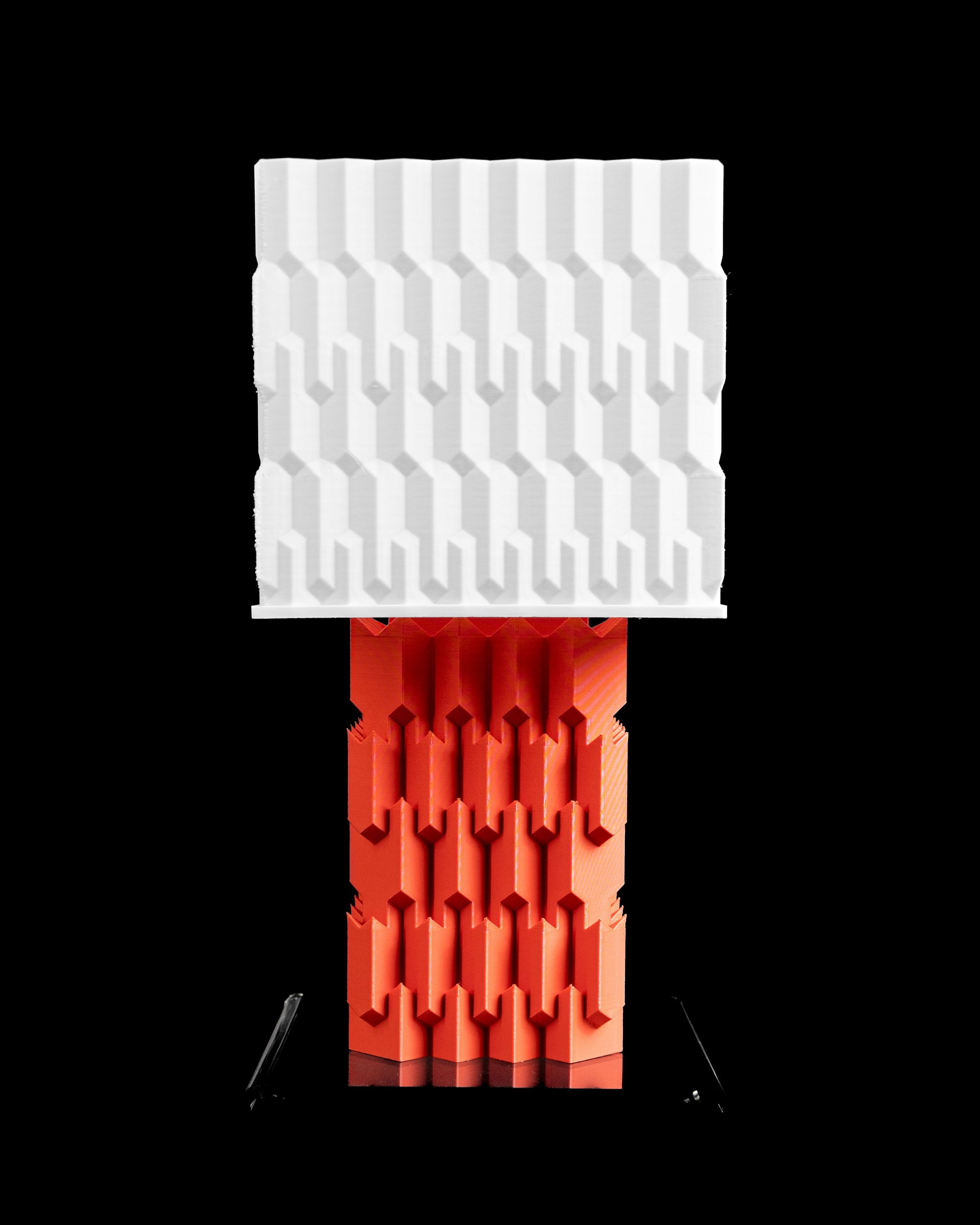 Elevate your bedside with a warm geometric table lamp, 3D printed.