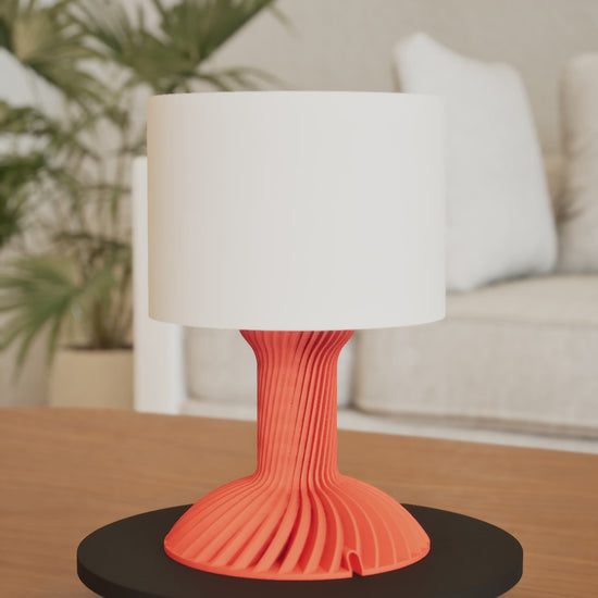 Bring warm ambient light to your bedside or work desk with this contemporary ribbed table lamp, 3D printed.
