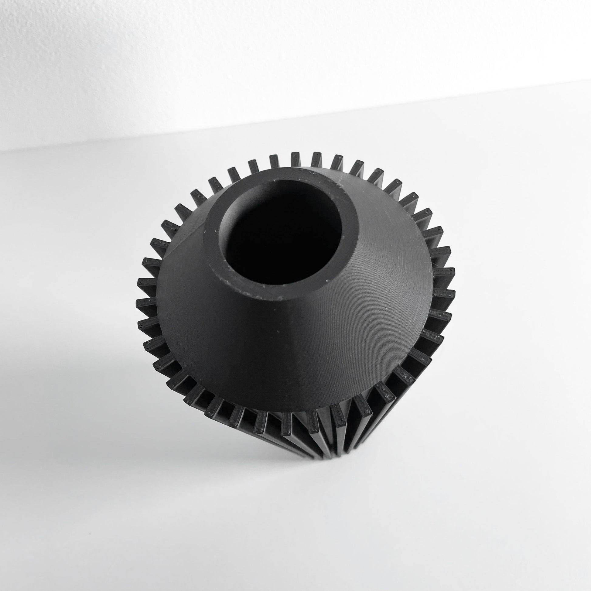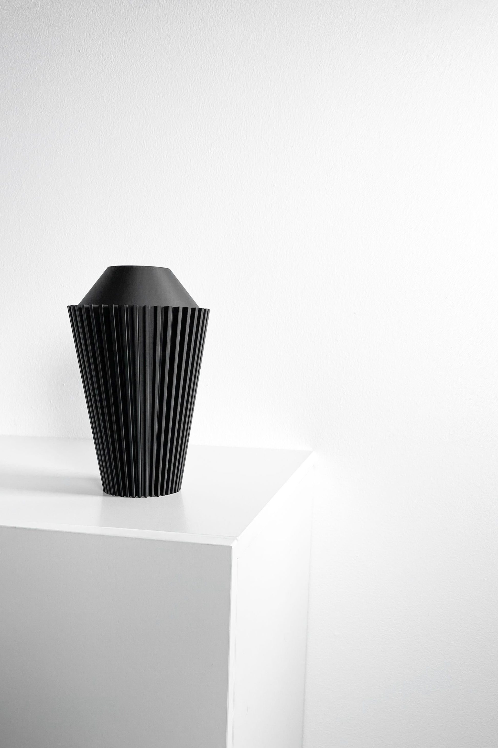Bring sculptural lines and clean curves to your table with this contemporary vase, 3D printed. It is designed to be a refined tabletop vase that showcases single blooms, buds, or dried stems with effortless style. Each piece shows unique character from precise layer work and careful finishing, making every item feel personal and modern.