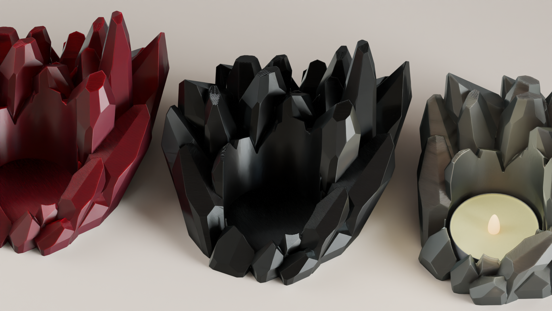 Bring a mystical, ambient glow to your room with this sculptural tealight holder, 3D printed.