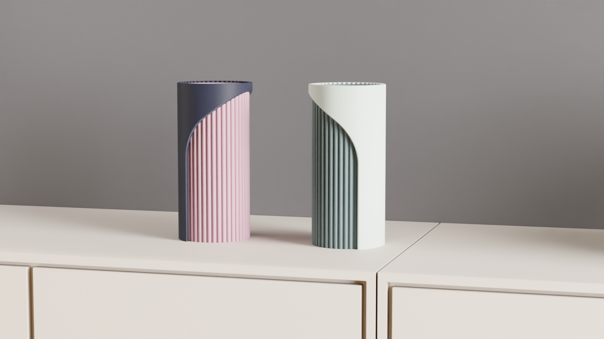 Unique Two-Tone Fluted Cylinder Vase, Modern Architectural Tabletop Accent, Nordic Style, Geometric Stylish Holder